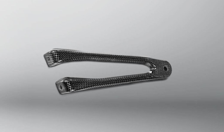 Kohlefaserhalterung für Evolution und Racing Line, ideal ohne Soziusrasten. Veredelt das Auspuff-Design.