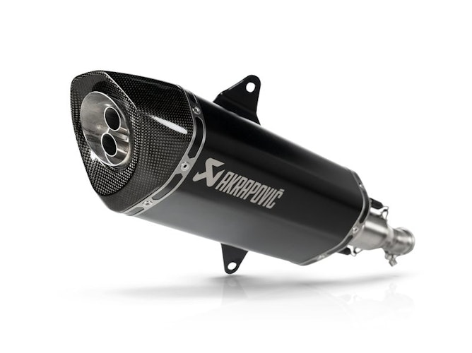 Dieses formschöne System besitzt eine schwarz lackierte Titan-Hülle mit graviertem Akrapovic-Logo. Eine handgefertigte Carbon-Endkappe und ein Edelstahl-Verbindungsrohr sorgen für eine sportliche Optik. Es bietet eine Gewichtseinsparung von 29,7 % (1,5 kg) und ein Leistungsplus von 0,5 kW. Die EC/ECE-Zulassung ist nur gültig, wenn der mitgelieferte Katalysator installiert ist. Ein optionales Carbon-Hitzeschild ist verfügbar. Die Installation erfolgt ohne Remapping und bietet eine tadellose Gasannahme.