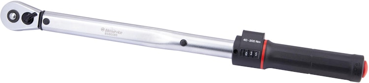 Der Drehmomentschlüssel mit 1/2" Antrieb bietet einen Bereich von 40 - 200 Nm, Umschaltknarre, mit spürbarem Click-Signal, Genauigkeit von ±4 %, direkter numerischer Anzeige und einer Länge von 505 mm.
