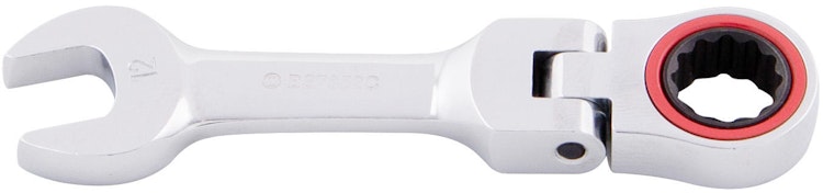 Diese Version hat einen extra kurzen Schaft, ist für das Arbeiten ohne Umsetzen konzipiert, feinverzahnt mit 72 Zähnen. Das Gelenk kann bis 90° abwinkeln, 12-kant, metrisch.