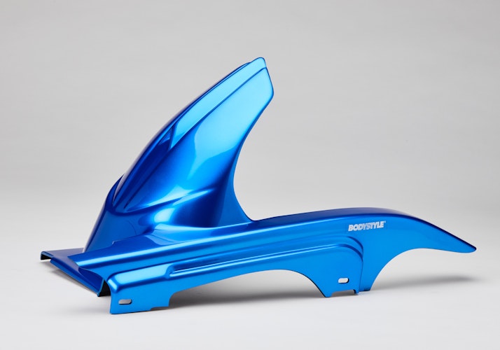 Die BODYSTYLE Sportsline Hinterradabdeckung bringt sportlich dynamische Konturen in Originalfarbe an das Hinterrad von Sport- und Naked-Bikes. Das Styling Part aus hochfestem ABS Kunststoff bietet idealen Spritzschutz für das Zentralfederbein. Mit ABE.
