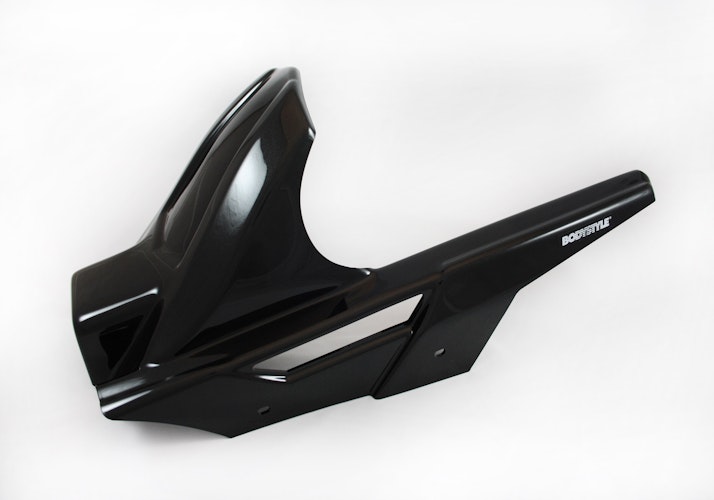 Die BODYSTYLE Sportsline Hinterradabdeckung bringt sportlich dynamische Konturen in Originalfarbe an das Hinterrad von Sport- und Naked-Bikes. Das Styling Part aus hochfestem ABS Kunststoff bietet idealen Spritzschutz für das Zentralfederbein. Mit ABE.
