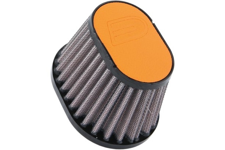 Oval-Sportluftfilter Ø 51 mm mit orangefarbenem Kunstleder-Top, passend für Bing Typ 64 & BMW R-Modelle. Hohe Leistung, Award-gewonnen, easy clean.
