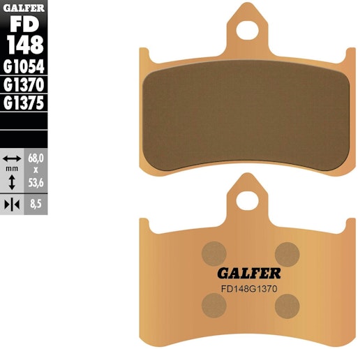 Hochleistungs GALFER FD148 Sintermetall-Bremsbelag G1370. Brauner Satz auf Stahl für überlegene Straßenperformance jenseits der ECE-R-90-Norm.