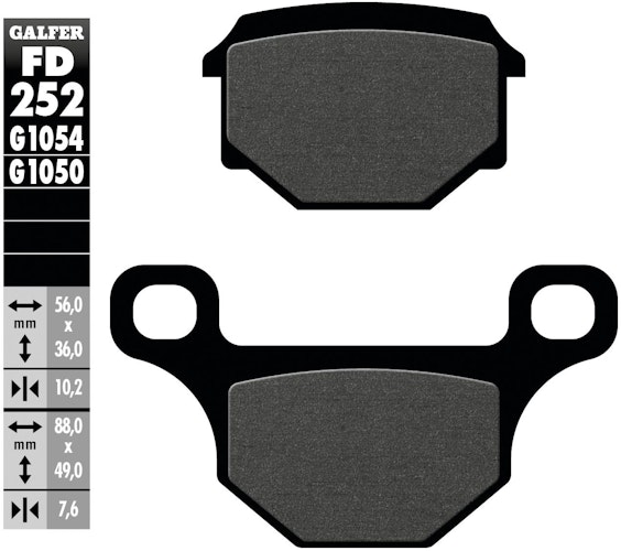 GALFER FD252 Bremsbelagsatz aus organischem G1050 Scooter-Material. Stahlträger für präzise Bremsmanöver und höchste Ansprüche an Qualität und Sicherheit.