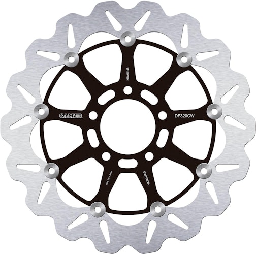Zertifizierte GALFER DF320 Wave-Bremsscheibe. Schwimmende Bauweise aus Stahl und Aluminium mit R90R-Zulassung für maximale Sicherheit und Agilität im Einsatz.