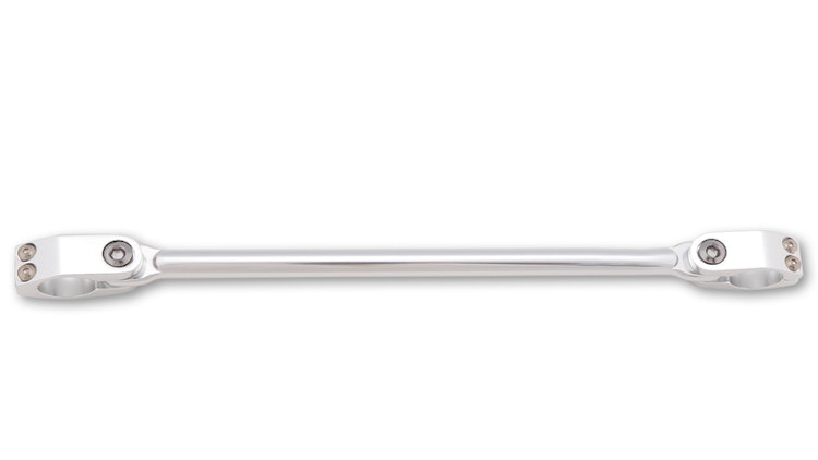 Silberne Cross-Bar Lenkerstrebe mit 2-teiligen CNC-Schellen, 300 mm Länge, zur einfachen Nachrüstung und Stabilisierung von 22,2 mm Lenkern.
