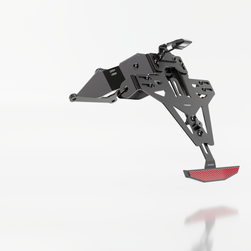 Der HIGHSIDER pro AKRON-RS PRO Kennzeichenhalter inklusive Kennzeichenleuchte passt sich optimal an die Linienführung Ihres Bikes an. Die lasergeschnittene 2 mm Stahlplatte ist witterungsbeständig pulverbeschichtet und bietet stufenlose Verstellmöglichkeiten. Durch Schiebesysteme lassen sich Blinker und Rückstrahler individuell positionieren.