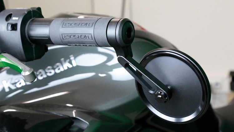 Der HIGHSIDER pro NOVA-RUN ist ein flacher Rundspiegel in seidenmattem Gewand. Das fein perlgestrahlte Aluminiumgehäuse bietet eine perfekte Balance zwischen Form und Funktion. Dank der korrosionsbeständigen Edelstahl-Kugelklemmung lässt er sich präzise ausrichten. Er passt für 7/8 Zoll und 1 Zoll Lenker und kann wahlweise nach oben oder unten montiert werden. Vollständig E-geprüft.