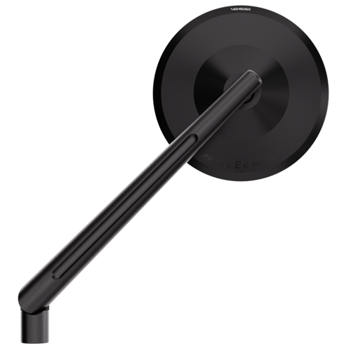 Der HIGHSIDER pro MONTANA-BLAST XL besticht durch einen um 25 mm verlängerten Spiegelarm, der die Ergonomie und die Sicht nach hinten deutlich verbessert. Das perlgestrahlte Oberflächenfinish verleiht dem klassischen Rundspiegel eine moderne, edle Note. Eingearbeitete Designakzente im Arm unterstreichen die Exklusivität dieser E-geprüften XL-Variante für beide Fahrzeugseiten.