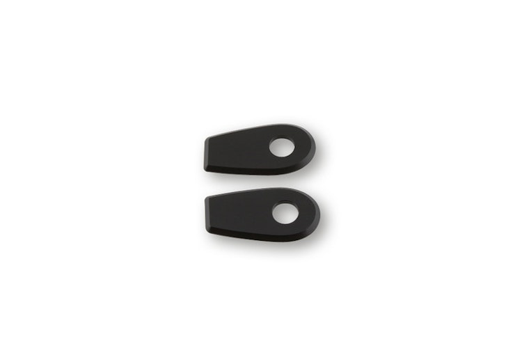 Schwarze Aluminium-Adapterplatten zur passgenauen Montage von Zubehörblinkern an der BMW RnineT (vorn/hinten).