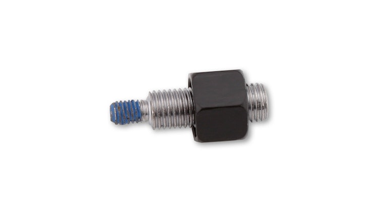 Dieser schwarze Adapter ist speziell für Verkleidungsspiegel mit M6 Innengewinde im Schaft konzipiert. Er bietet ein M10 x 1,25 Außengewinde für den Anschluss an das Fahrzeug. Die Sicherungsmutter verfügt über eine Schlüsselweite von 17 mm für eine zuverlässige Kraftübertragung.