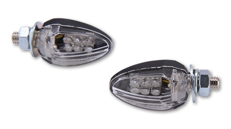 Der DROP ist ein superheller Mini-Blinker in tropfenähnlicher Form. Das schwarze Kunststoffgehäuse mit Klarglas beherbergt modernste Lichttechnik auf engstem Raum. Das E-Prüfzeichen ermöglicht den legalen Einsatz am Heck des Motorrads.