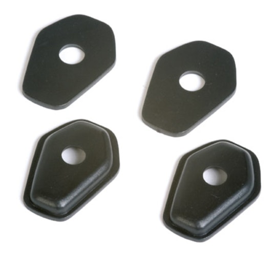 HIGHSIDER smart Blinker-Adapterplatten Indy Spacer in Schwarz. Diese Platten dienen zur Montage von Universalblinkern mit Schraubbefestigung an den originalen Befestigungspunkten in der Verkleidung. Speziell entwickelt für Suzuki SV 650/1000 (ab 2003) und GSX-R 600/750/1000 (ab 2002). Das Set deckt die großen Öffnungen der Originalblinker formschön ab.