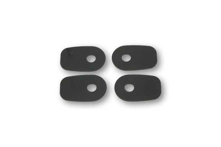 HIGHSIDER smart Blinker-Adapterplatten Indy Spacer für Kawasaki Z750, ZX10R und ER-6 Modelle. Diese schwarzen Kunststoffplatten dienen als Aufnahme für Zubehörblinker mit Schraubbefestigung. Durch die mitgelieferten Vorder- und Rückplatten wird eine stabile Klemmung an der Verkleidung erreicht.
