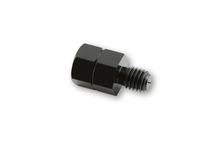 Schwarzer Spiegeladapter von HIGHSIDER smart zur Adaption von M10 Rechtsgewinde auf M8 Linksgewinde.