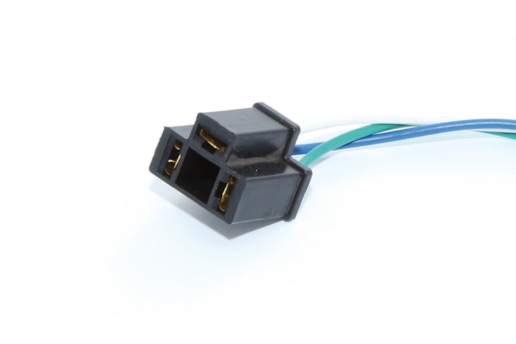 Dieser 3-Pin Stecker vom Typ A von HIGHSIDER smart ist als weibliche Aufnahme speziell für 12V H4 Halogenbirnen konzipiert. Das vormontierte 210 mm lange Kabel erleichtert den Anschluss im Scheinwerfergehäuse. Die Kabelbelegung ist farblich markiert: Grün für Masse, Blau für Fernlicht und Weiß für Abblendlicht.