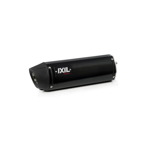 Kurzer IXIL Hexoval Xtrem Endtopf in Schwarz fuer Honda VFR 750 F (90-93). E-geprueft mit tiefem sattem Klang und nur 2.1 kg Gewicht.