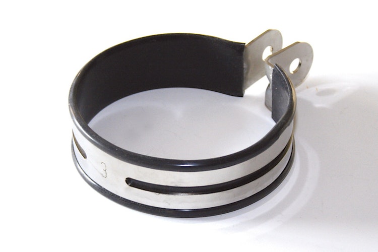 Universelle IXIL Auspuffschelle mit 12 cm Durchmesser zur stabilen Befestigung.
