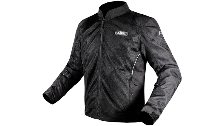 LS2 Airy EVO Ultraleichte Jacke für Herren in Schwarz (Gr. L): Ultraleichtes Polyester mit hoher Luftdurchlässigkeit, Belüftungsöffnungen an Brusttaschen, verstellbar im Hüft- und Armbereich, 2 vordere Außentaschen. CE-Protektoren an Schultern, Brust & Ellbogen (Level 1), Rückenprotektor LS2 851 Level 2 optional, reflektierende Details.