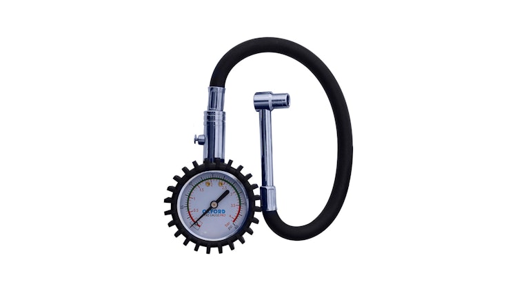 Das Oxford Pro Reifenfüllmessgerät bietet eine analoge Anzeige und ist für einen Arbeitsdruck bis 4 bar geeignet. Es ist kompatibel mit allen handelsüblichen Ventilen.