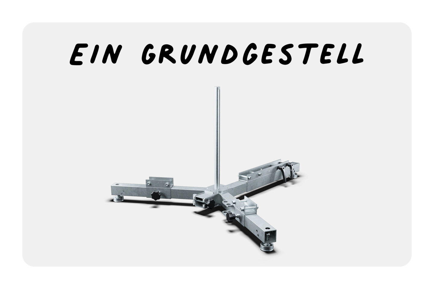 Das Herzstück ist das robuste, standfeste 3-Bein-Grundgerüst, die Basis unseres modularen Konzepts. Es erlaubt dir, das EVO3® ganz nach deinen Bedürfnissen mit verschiedenen Kits auszustatten oder bei Bedarf auszutauschen.