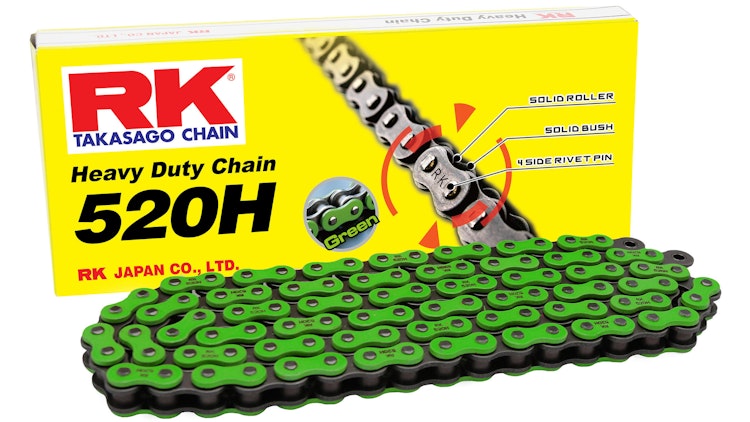 RK 520H Kette (114 Gl., Grün) für Aprilia RX 125, Cagiva MIto 125, Honda CA 125 Rebel, TM Racing Enduro 125, Yamaha WR 250 F, XV 125 Virago und YZ 250