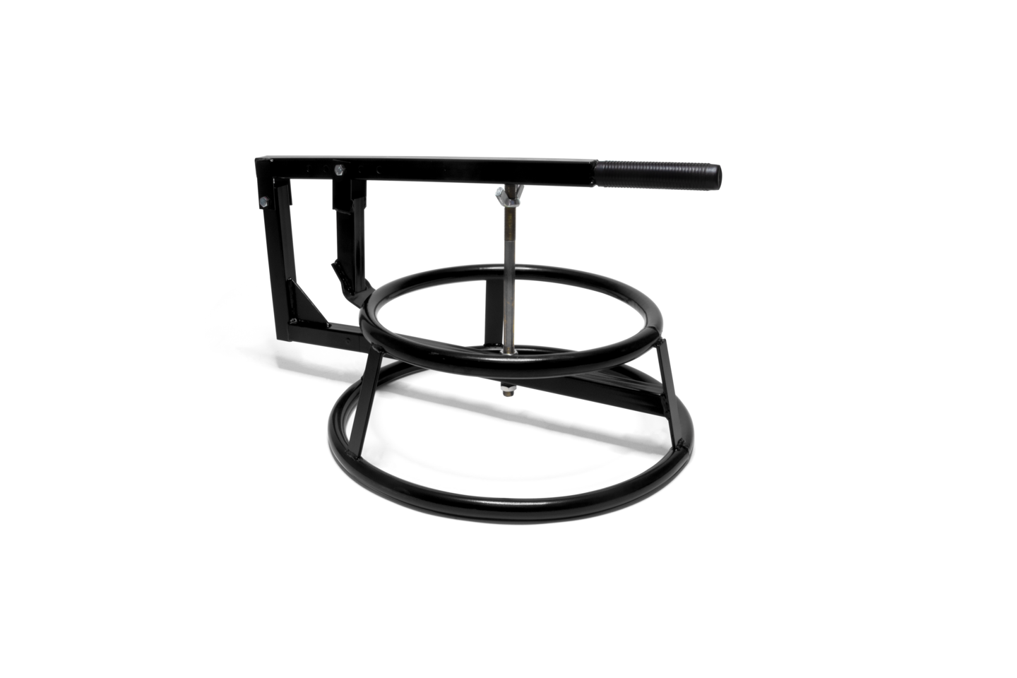 Im ersten Schritt wird das Vorder- oder Hinterrad ausgebaut. Hier unterstützt der tireX Radwechselprofi. Der tireX wird unter dem Rad platziert und hochgeschraubt, bis die Auflageflächen das Rad halten. Nach dem Lösen der Achse wird das Rad weiterhin von dem tireX gehalten und knallt nicht auf den Boden. So wird das Rad kinderleicht herausgezogen.