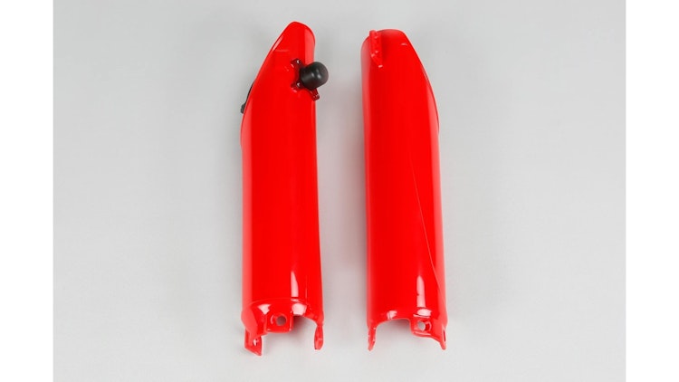 UFO Plast Gabelprotektor für Honda-Modelle in Rot. Hochwertiger PP-Kunststoff mit robuster Schutzfunktion für Enduro und Motocross.