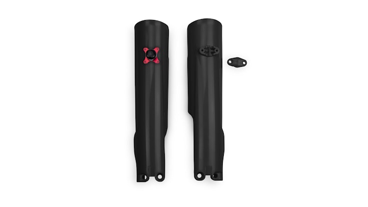 UFO Plast Gabelprotektor für KTM-Motorräder aus strapazierfähigem Polypropylen in Schwarz. Robuster Schutz für Enduro und Motocross.
