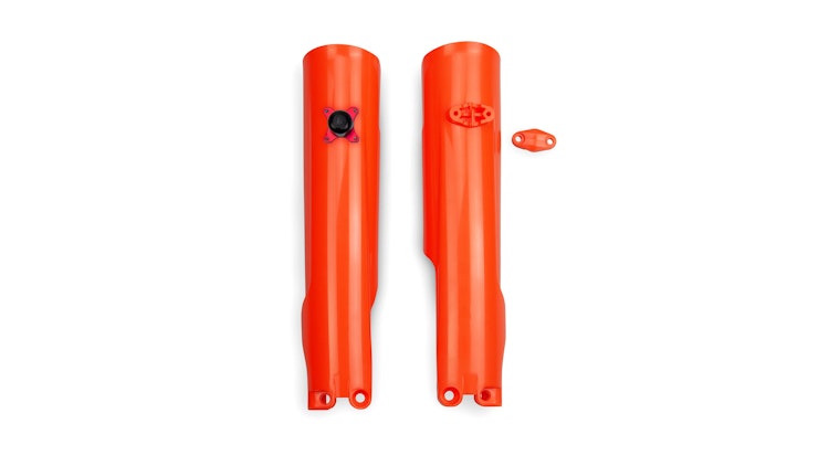 UFO Plast Gabelprotektor für KTM in Orange. Hochwertiger Kunststoffschutz für Gabelrohre. Strapazierfähiges Polypropylen mit perfekter Passform.