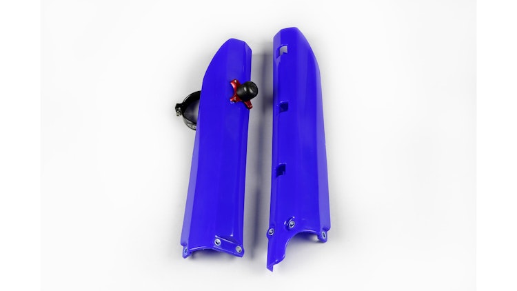 UFO Plast Gabelprotektor aus robustem Polypropylen für Yamaha-Modelle in Blau – optimaler Schutz im Off-Road-Einsatz.