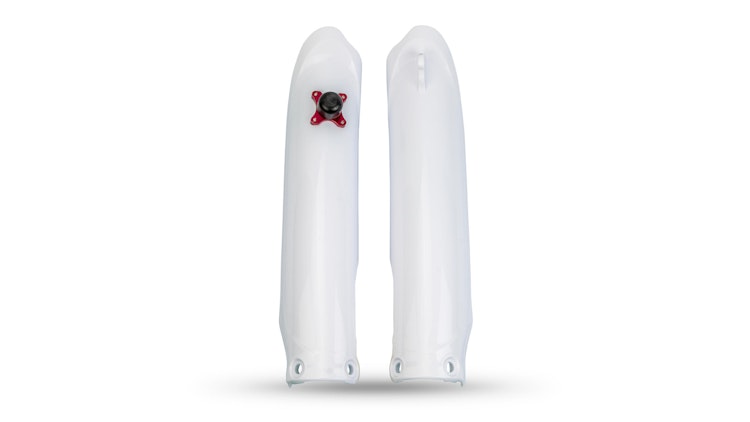 UFO Plast Gabelprotektor aus strapazierfähigem Polypropylen für Yamaha-Modelle – optimaler Schutz beim Offroad-Einsatz in Weiß.