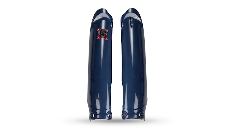 UFO Plast Gabelprotektor aus Polypropylen für Yamaha-Modelle in Blau. Optimaler Schutz vor Steinschlag und Beschädigungen im Offroad-Einsatz.