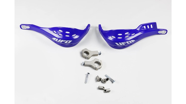 UFO Plast Universalhandprotektor "Jumpy" aus Polypropylen und Aluminium in Blau. Hochwertiger Handschutz für Enduro und Motocross mit Montageteilen.