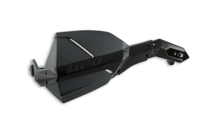 Der UFO Plast Handprotektor "Caiman" ist Ihr zuverlässiger Begleiter für sicheres Fahren auf allen Geländen. Dieser universelle Handprotektor wurde speziell für Enduro-, Motocross- und Off-Road-Einsätze entwickelt und bietet optimalen Schutz für Ihre Hände bei Stürzen und Kontakt mit Hindernissen. Das hochwertige Polypropylen-Material (PP) garantiert eine hervorragende Haltbarkeit und Strapazierfähigkeit, auch unter extremen Bedingungen. Die robuste Konstruktion schützt vor Schmutz, Schlamm und Wasser, während die ergonomische Form eine natürliche Griffposition ermöglicht. Die Montageteile sind bereits im Lieferumfang enthalten, sodass eine schnelle und unkomplizierte Installation an Ihrer Maschine möglich ist. Der Handprotektor in elegantem Graphit-Grau passt sich harmonisch an die meisten Motorradmodelle an. Dank der universellen Kompatibilität können Sie diesen Handschutz an verschiedenen Motorrädern nutzen. UFO Plast steht für italienische Qualitätsarbeit und langjährige Erfahrung im Bereich Motorrad-Zubehör. Investieren Sie in Ihre Sicherheit mit diesem bewährten Handprotektor.