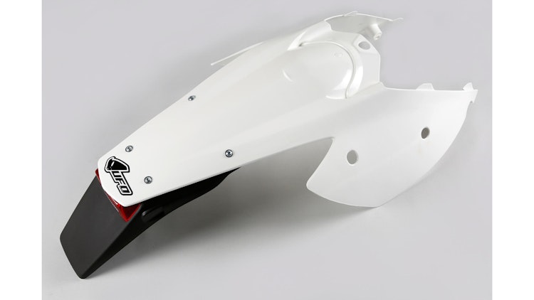 UFO Plast Hinten-Kotflügel weiß für KTM-Modelle. Robuster Polypropylen-Kotflügel mit perfekter Passform und einfacher Montage.