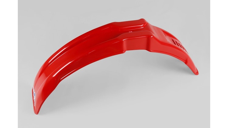 UFO Plast Vintage Frontschutzblech aus Polypropylen in Rot – robuste Schutzausrüstung für Enduro und Motocross mit klassischem Design.