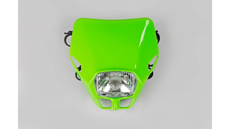 UFO Plast Scheinwerfer Firefly 12V/35W in Grün. Robustes Kunststoffgehäuse mit Lichtmaske für sichere Geländebeleuchtung bei Enduro und Motocross.