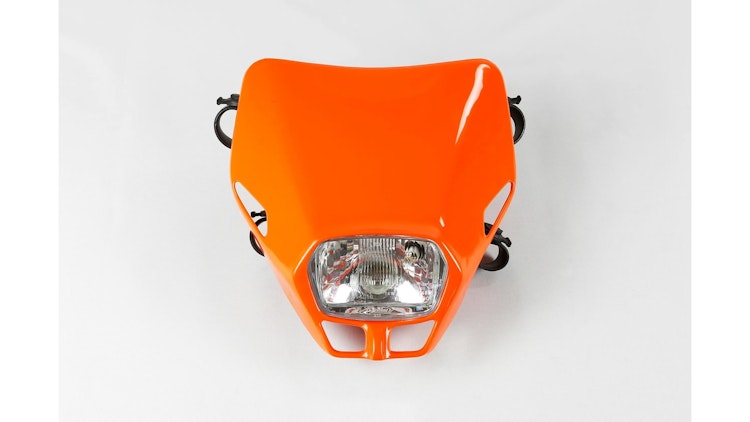 UFO Plast Scheinwerfer Firefly orange 12V 35W mit strapazierfähigem Kunststoff-Design für Enduro und Off-Road-Motorräder.