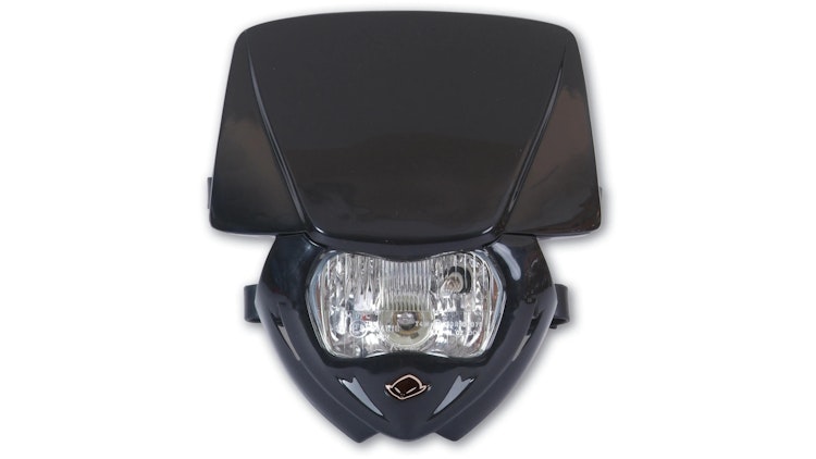 UFO Plast Scheinwerfer Panther - robuste Lichtmaske aus Kunststoff, schwarz, 12V/35W für Enduro und Off-Road-Motorräder.