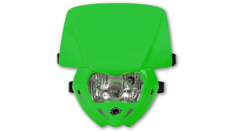 UFO Plast Scheinwerfer Panther grün, 12 V 35 W. Robuste Lichtmaske aus hochwertigem Kunststoff für Enduro und Off-Road mit strapazierfähiger Verarbeitung.