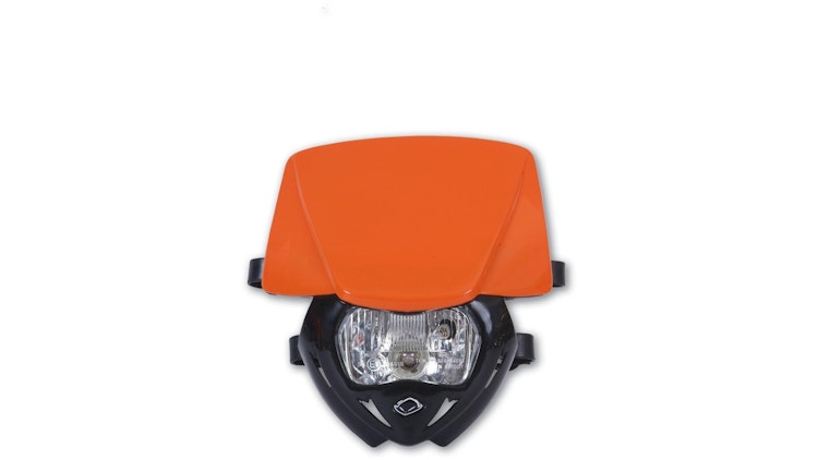 UFO Plast Scheinwerfer Panther, Orange/Schwarz, 12V 35W, hochwertiger Kunststoff für Enduro und Off-Road Motorräder.