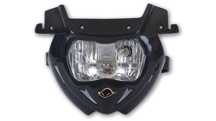 Der UFO Plast Scheinwerfer "Panther" ist eine hochwertige Lichtmaske mit integriertem Scheinwerfer, speziell entwickelt für anspruchsvolle Enduro- und Off-Road-Einsätze. Das robuste Kunststoffgehäuse bietet optimalen Schutz für die Scheinwerfereinheit und garantiert Langlebigkeit auch unter extremen Bedingungen. Der untere Teil in klassischem Schwarz fügt sich perfekt in das Design moderner Off-Road-Motorräder ein und verleiht dem Fahrzeug ein sportliches, aggressives Erscheinungsbild. Dank des strapazierfähigen Materials widersteht der Scheinwerfer Schlägen, Vibrationen und Witterungseinflüssen zuverlässig. Die hochwertige Verarbeitung garantiert sichere Befestigung und optimale Lichtleistung. Ideal für Enduro-, Motocross- und Adventure-Bikes, die eine zuverlässige Scheinwerferlösung benötigen. Der UFO Plast Panther-Scheinwerfer überzeugt durch Qualität, Funktionalität und ästhetisches Design – ein Must-Have für jeden ambitionierten Off-Road-Fahrer.