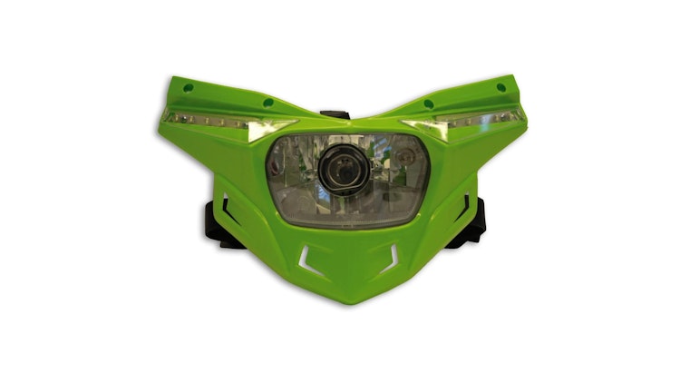 Der UFO Plast Scheinwerfer 'Stealth' ist eine hochwertige LED-Lichtmaske, speziell entwickelt für Enduro-, Motocross- und Off-Road-Motorräder. Diese robuste Schutzvorrichtung besteht aus strapazierfähigem Kunststoff und bietet optimalen Schutz für den empfindlichen Scheinwerfer bei anspruchsvollen Geländeeinsätzen. Der grüne untere Teil des Stealth-Modells verleiht Ihrem Motorrad ein modernes, sportliches Aussehen und ist gleichzeitig funktional konstruiert. Das Material überzeugt durch hohe Bruchfestigkeit und Langlebigkeit, was es zur idealen Wahl für intensive Fahrten macht. Der Scheinwerfer ist kompatibel mit verschiedenen Enduro- und Motocross-Motorrädern und lässt sich problemlos montieren. Dank der LED-Technologie erhalten Sie eine zuverlässige Ausleuchtung in verschiedenen Lichtverhältnissen. Die Montage erfolgt werkzeugfrei oder mit minimalem Aufwand. UFO Plast garantiert italienische Qualitätsstandards und Langlebigkeit. Dieser Scheinwerfer ist ein unverzichtbares Accessoire für jeden ambitionierten Offroad-Fahrer.