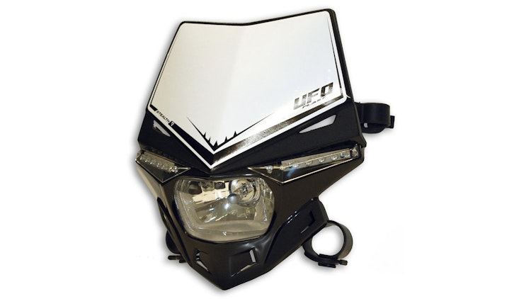 Der UFO Plast Scheinwerfer "Stealth" ist eine hochwertige LED-Lichtmaske, speziell entwickelt für Enduro- und Off-Road-Motorräder. Dieser robuste Scheinwerfer kombiniert funktionales Design mit strapazierfähiger Kunststoffkonstruktion und bietet zuverlässige Beleuchtung auch unter anspruchsvollen Bedingungen. Mit einer Leistung von 35 W und 12 V Stromversorgung liefert der LED-Scheinwerfer helles und ausfallsicheres Licht für maximale Sicherheit auf der Strecke. Das schwarze Kunststoffgehäuse ist extrem langlebig und beständig gegen Schmutz, Wasser und UV-Strahlung – perfekt für intensive Off-Road-Einsätze. Die Stealth-Lichtmaske zeichnet sich durch ihre moderne Ästhetik aus und verleiht deinem Motorrad ein aggressives, sportliches Aussehen. Die Montage ist werkzeugschonend und unkompliziert durchzuführen. Der Scheinwerfer ist kompatibel mit verschiedenen Enduro- und Motocross-Modellen und wird als komplette Einheit geliefert. UFO Plast steht für italienische Qualitätshandwerkskunst und garantiert eine lange Lebensdauer. Vertraue auf bewährte Performance und Zuverlässigkeit mit diesem Premium-Scheinwerfer für dein Abenteuer abseits der Straße.