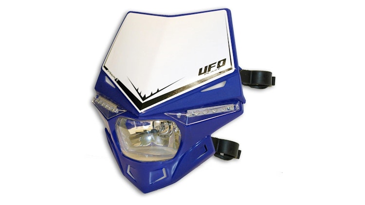 UFO Plast LED-Scheinwerfer "Stealth" in Blau - 12V 35W. Hochwertige Lichtmaske aus robustem Kunststoff für Enduro und Motocross.