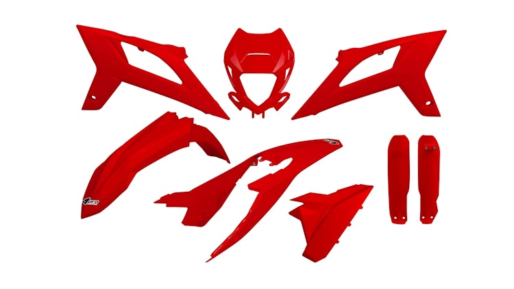 UFO Plast Verkleidungssatz für Beta-Modelle in Rot mit Gabelprotektor – aus strapazierfähigem Polypropylen.