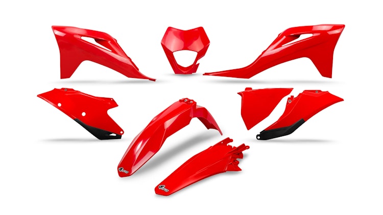 UFO Plast Verkleidungssatz für GasGas in Rot. Hochwertiges Polypropylen, strapazierfähig und stoßfest für Enduro und Off-Road.