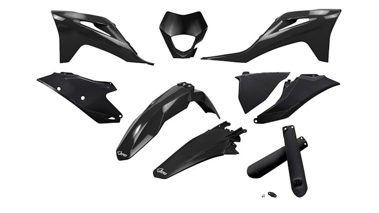 UFO Plast Verkleidungssatz für GasGas-Modelle. Hochwertiger Kunststoff in Schwarz mit optimaler Passform für Enduro und Off-Road.